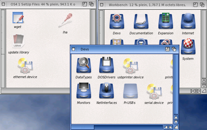 Double cliquer sur l'icône du Workbench, puis sur "System", dans System se trouve désormais un dossier intitulé "AmiUpdate".Ouvrir le dossier, et lancer AmiUpdate!