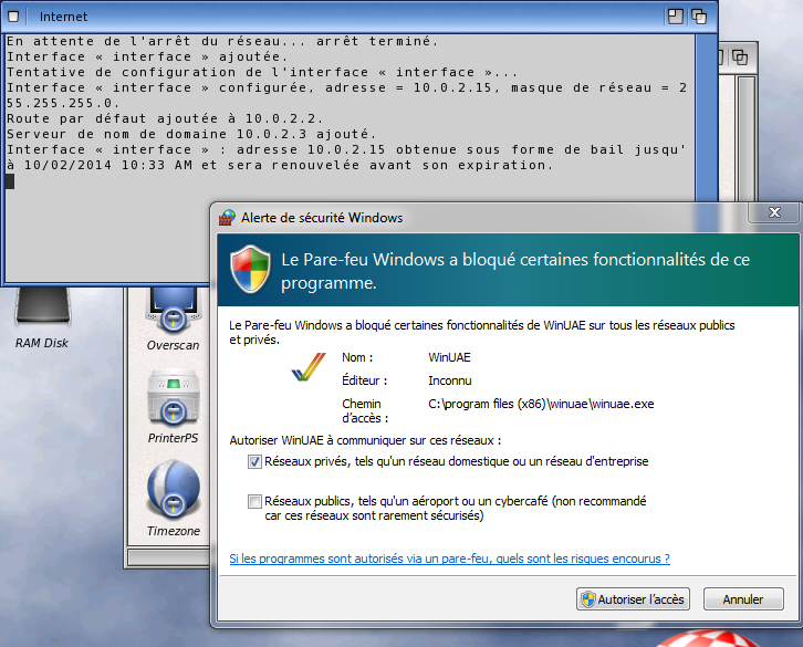 Le système d'exploitation va donc essayer d'obtenir une configuration depuis le DHCP fourni par winuae. Répondez "Oui"