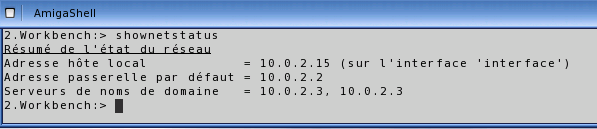Une petite vérification: ouvrez le shell (une icône est présente en bas de l'écran pour se faire), puis saisissez shownetstatus dans la fenêtre.