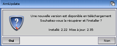 Au premier lancement, il sera demandé de mettre à jour l'application AmiUpdate.