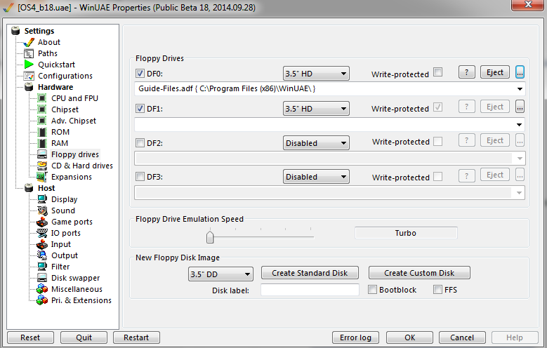 - Si WinUAE crashe, c'est probablement que vous avez soit activé des options de WinUAE qui ne fonctionnement pas en environnement PPC (ex: vous avez rajouté de la fastram, ou de la chipram, vous avez activé le partage de fichier avec le PC....). Il faut se contenter du strict nécessaire toutes ces options de WinUAE ont été développées pour l'émulation de l'OS1 à 3, mais pas pour l'OS4!