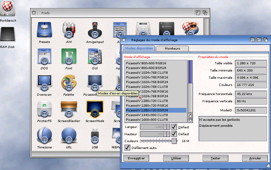 Puis double cliquer sur l'icône "Prefs", et enfin "Screenmode"